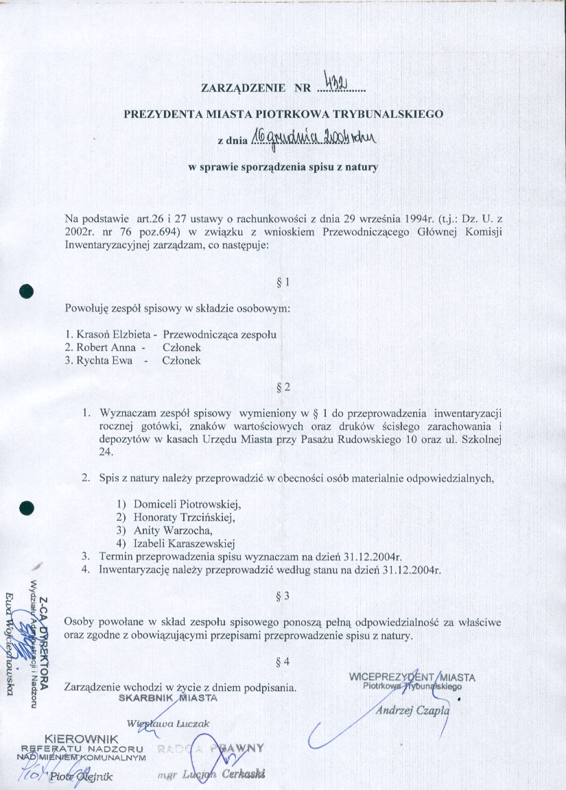 Zarządzenie Nr 431 z dn. 16 grudnia 2004 r.