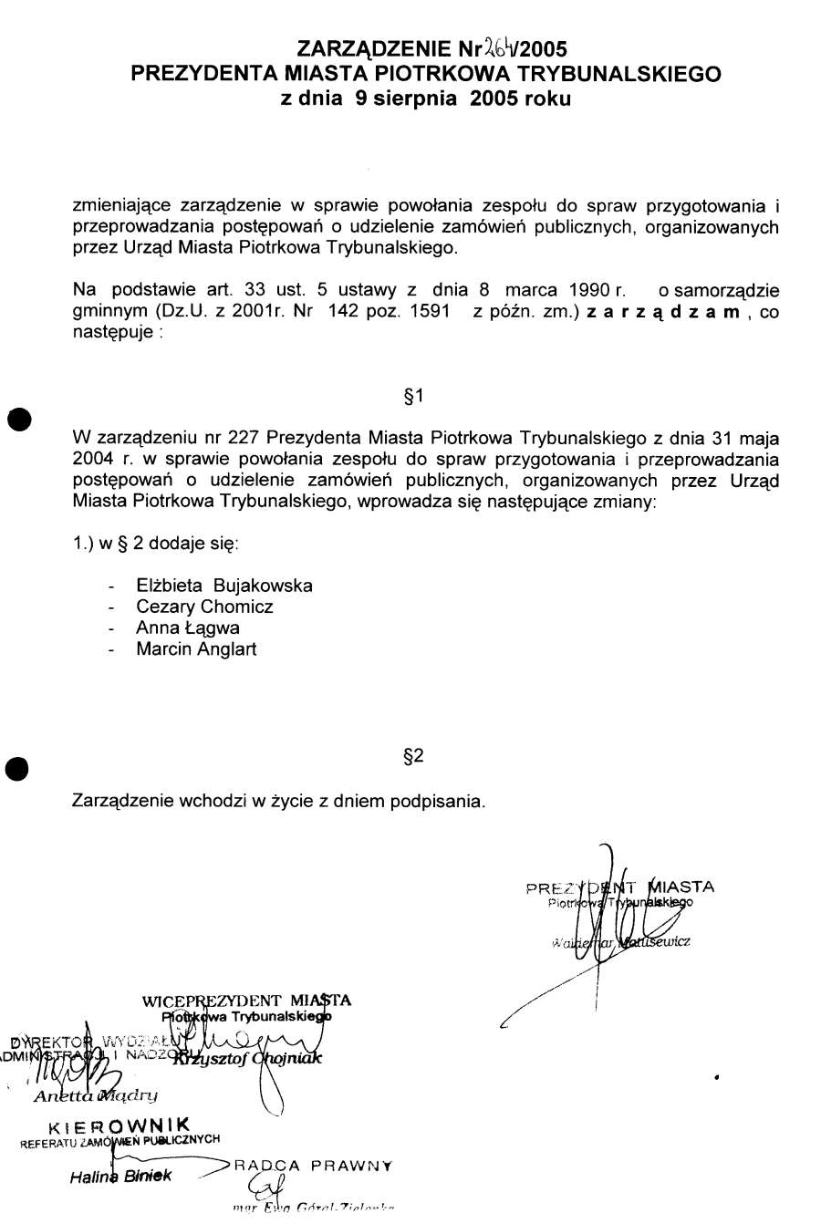 Zarządzenie Nr 264 z dn. 9 sierpnia 2005 r.