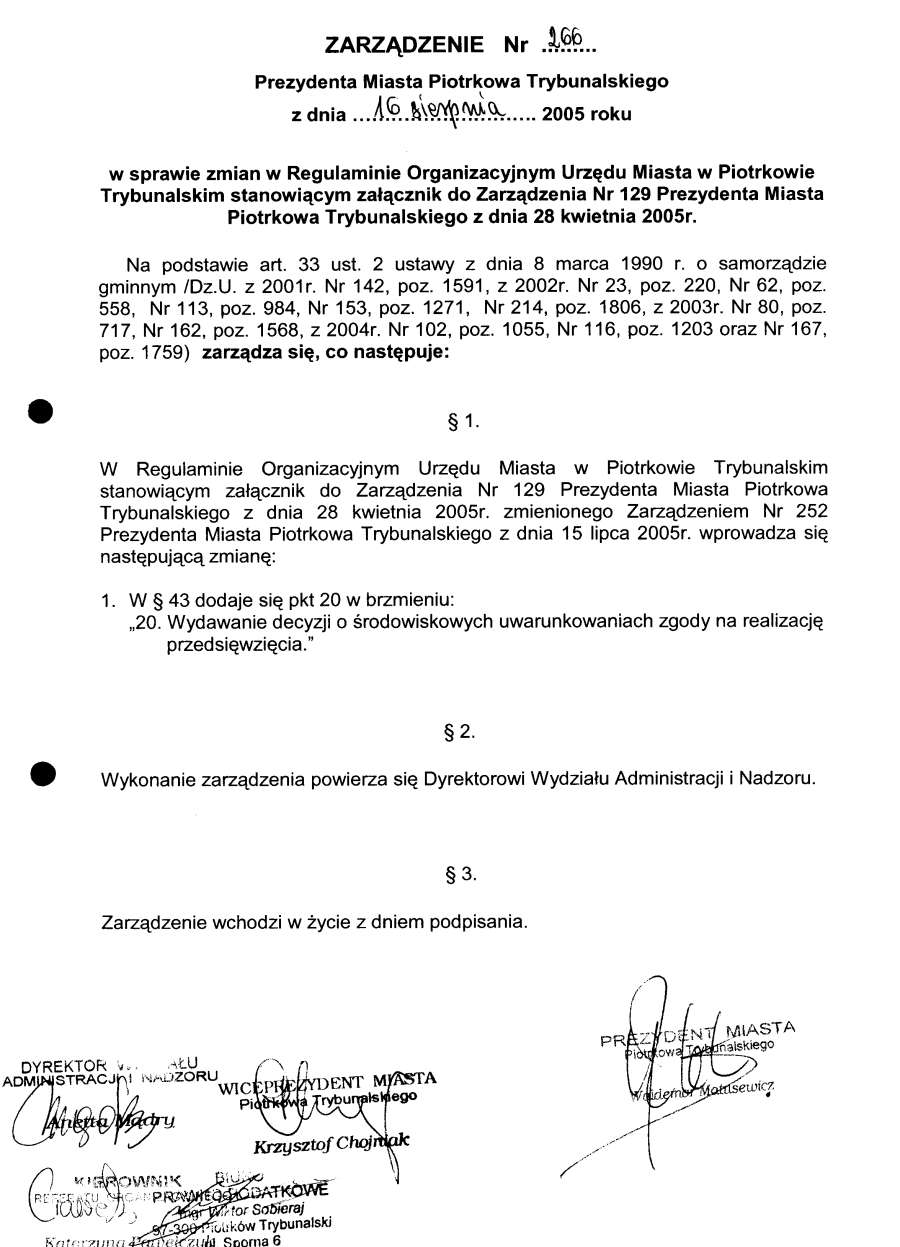 Zarządzenie Nr 266 z dn. 16 sierpnia 2005 r.