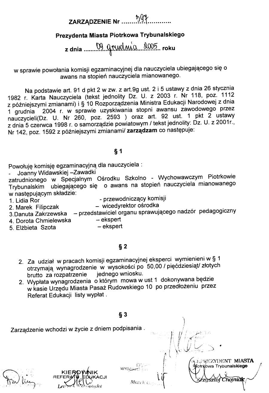 Zarządzenie Nr 397 z dn. 9 grudnia 2005 r.