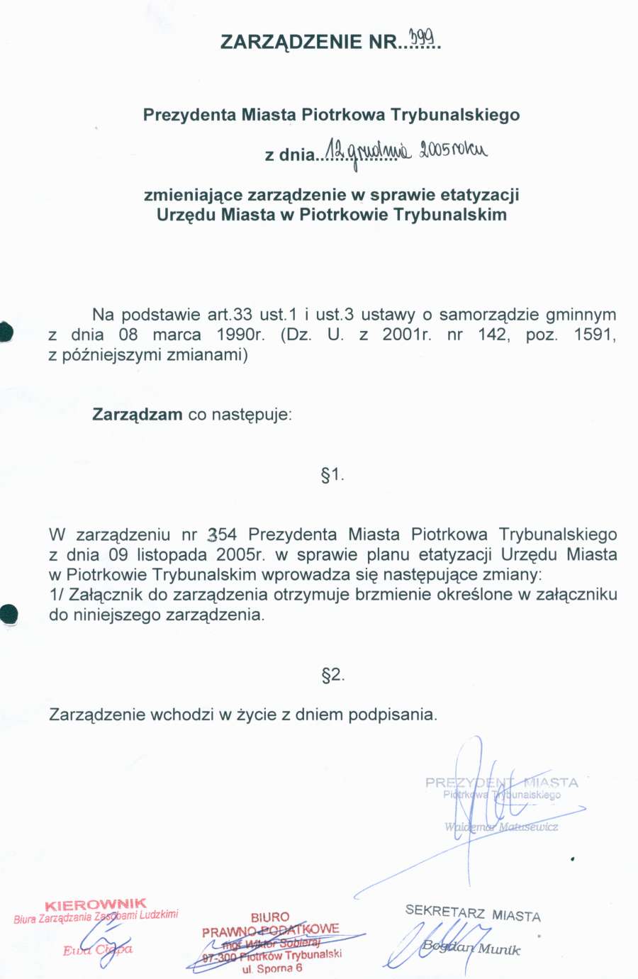 Zarządzenie Nr 399 z dn. 12 grudnia 2005 r.