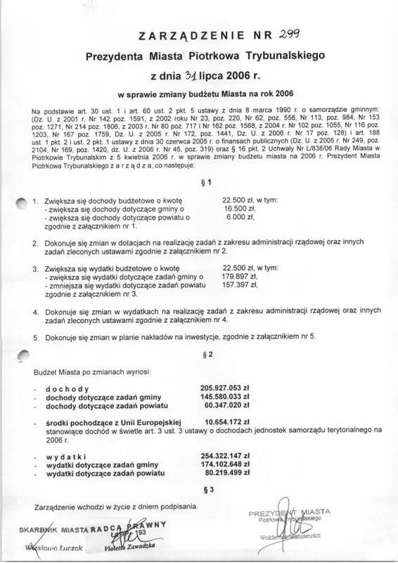 artykuł nr 1Zarządzenie Nr 299 z dn. 31 lipca 2006 r. Załączniki:Zarzadzenie Nr 299 z dn. 31.07.06 r. w/s zmiany budżetu Miasta na rok 200661 KBOtwórz plik w Google Docs - Viewer